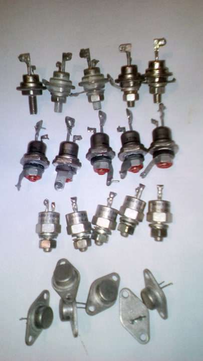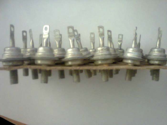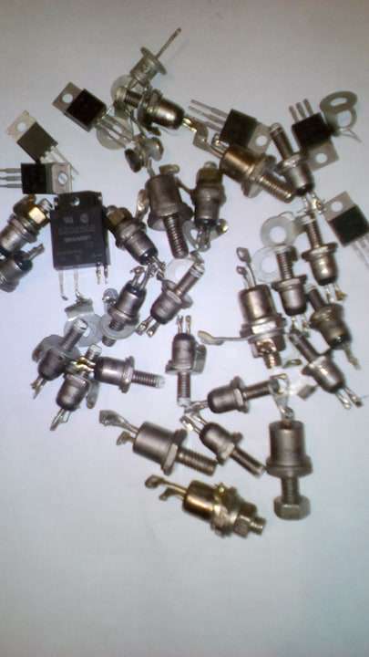 В наличии много . Отечественные, импортные. демонтаж с рабочего оборудования.КУ201,КУ202, КУ208, Д235,КУ101,КУ109, КУ221,Т112,Т122,ТС122,ТС132,ТО132-50, ТО125 ,чешскиеКТ702, ,КТ704, КТ706,КТ503,КТ505, AEG T24N400.Диоды Д231, Д214,КД203,КД202,КД206,и много других. Цена от 3 до 8грн штука