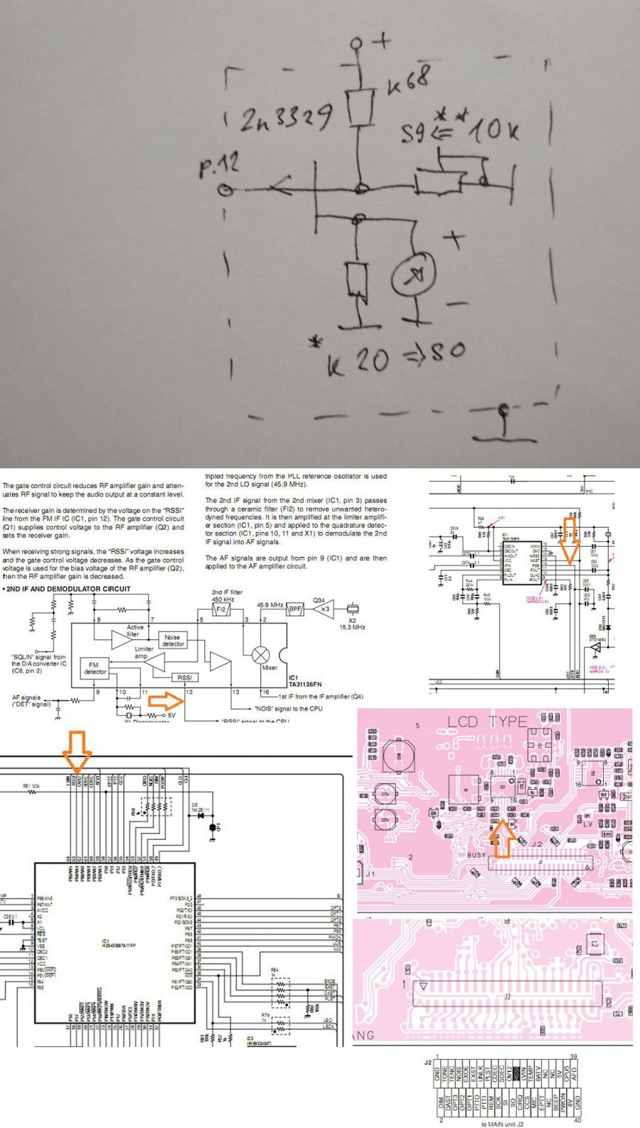 За бажання використовувати зовнішній стрілочний S-метр можна використовувати сигнал RSSI з вив.12 ІМС чм-детектора TA31136 (див. PCB нижче). Де шунт мікроамперметра задає нижню межу (0 балів шкали S-метра), а підлаштування 10k для встановлення верхньої межі шкали S-метра.