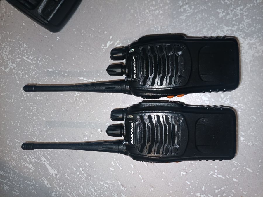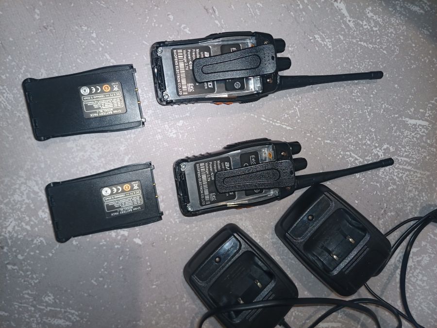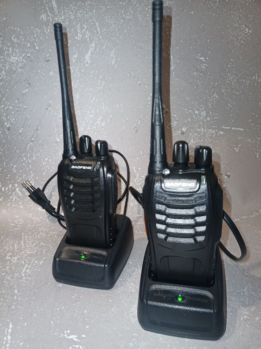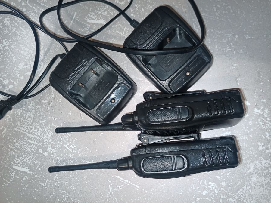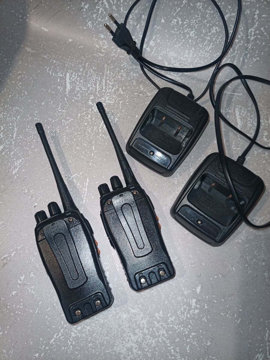 Новий стан, працюють відмінно, у використанні не були, коробки загублені при переїзді, при повністю заряджених акумуляторах вихідна потужність близько 3 Вт, робоча частота 400-470 мГц, 870 грн. - торг.