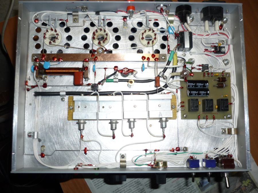 Габарити корпусу: 280х170х210 (ШхВхГ). Анодна напруга 900В, струм аноду 0,55-0,6А, вихідна потужність 320-350Вт при вхідній 10-15Вт.