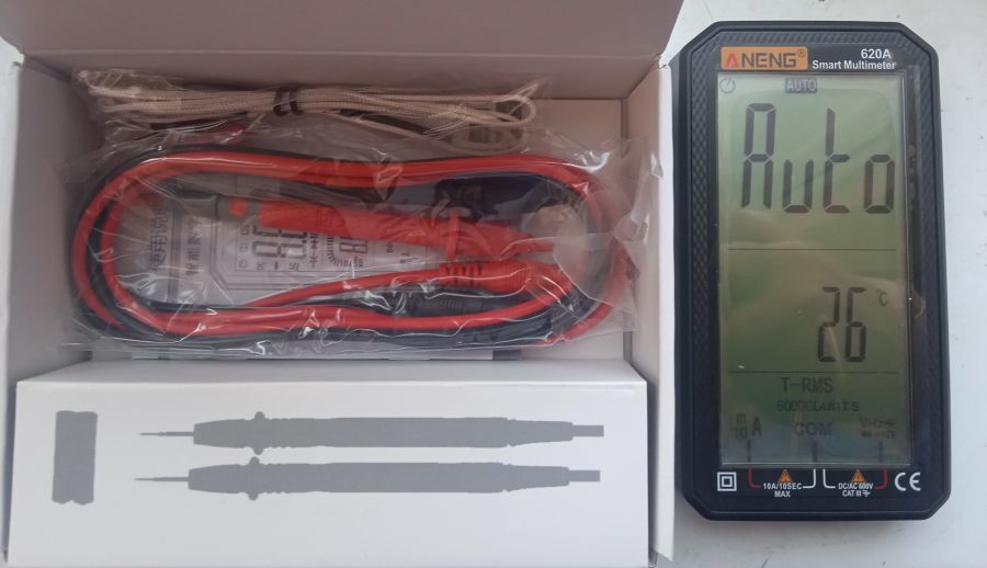 Новый, проверен. Цифровой мультиметр ANENG 620A автоматический тестер напряжения, тока и сопротивления с ЖК-дисплеем и щупами.