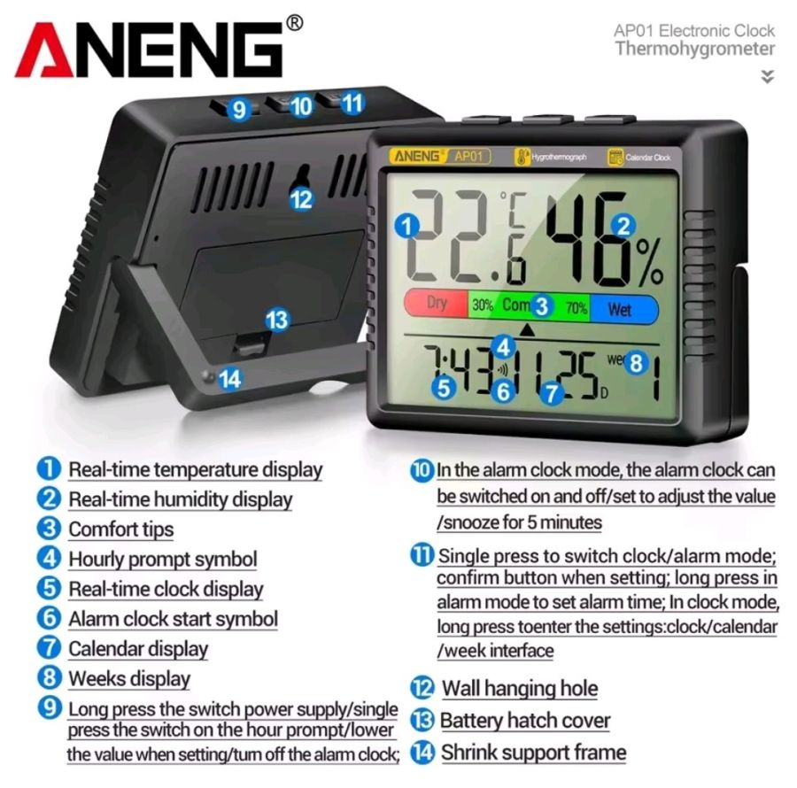 Пропоную новий цифровий термогігрометер від відомої компанії ANENG !