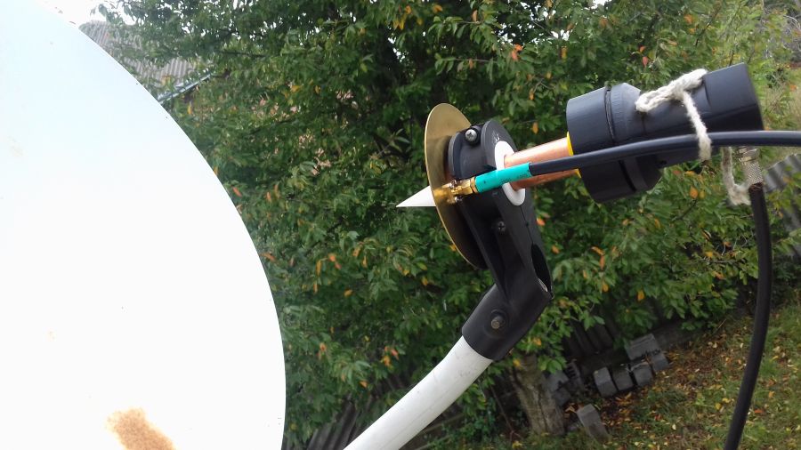 Вихідна потужність трансвертера 2 вати,що цілком достатньо для роботи в зоні покриття сопутника. Антена POTY вставляється в прийомну головку,що дуже зручно.Антена кріпиться на кронштейні від сопутникового телебачення