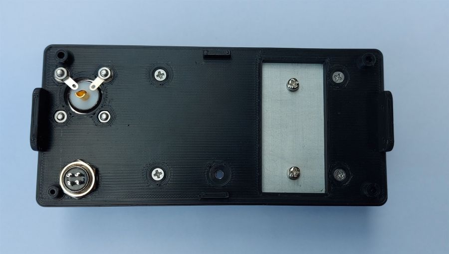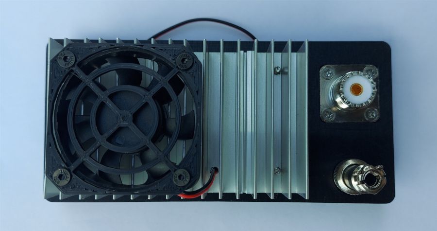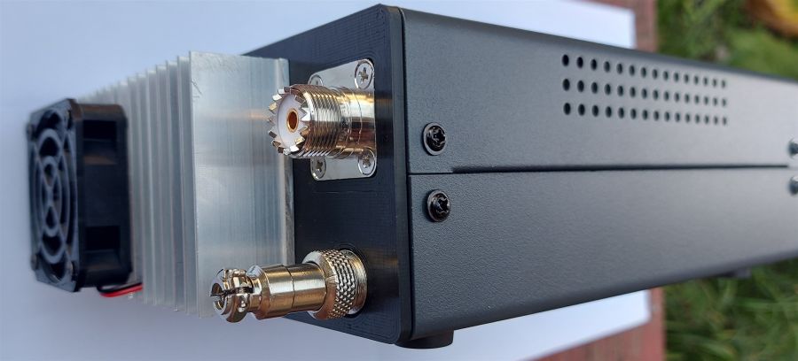 3. Задня панель. Панель підсилювача. 3D-друк. На ній алюмінієвий радіатор, вентилятор (кулер) охолодження 50х50, роз’єми живлення та антени.