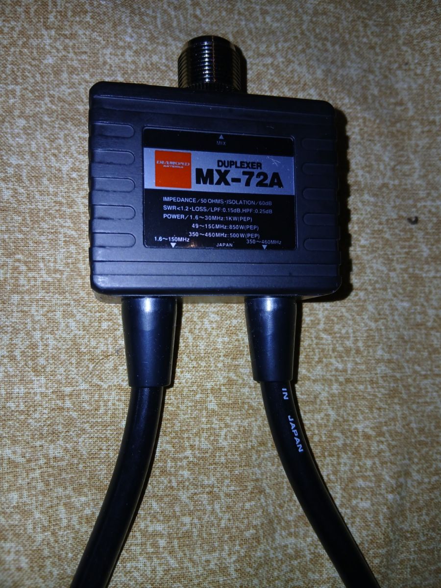 Diamond MX-72A/N - это дуплексер с диапазонами частот 1.6-30,140-150 МГц/400-460 МГц, используется для одновременного приема/передачи.