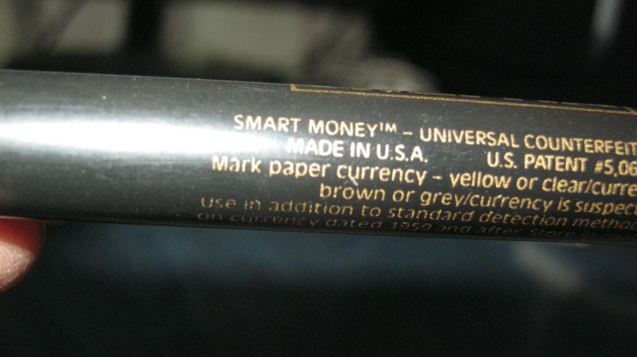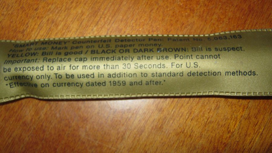 Досить провести по купюрі або за торцем кількох купюр цією ручкою, на фальшивці миттєво з'являється темна смуга. На справжній купюрі нічого, або просто світло-жовта смужка, яка зникне згодом.