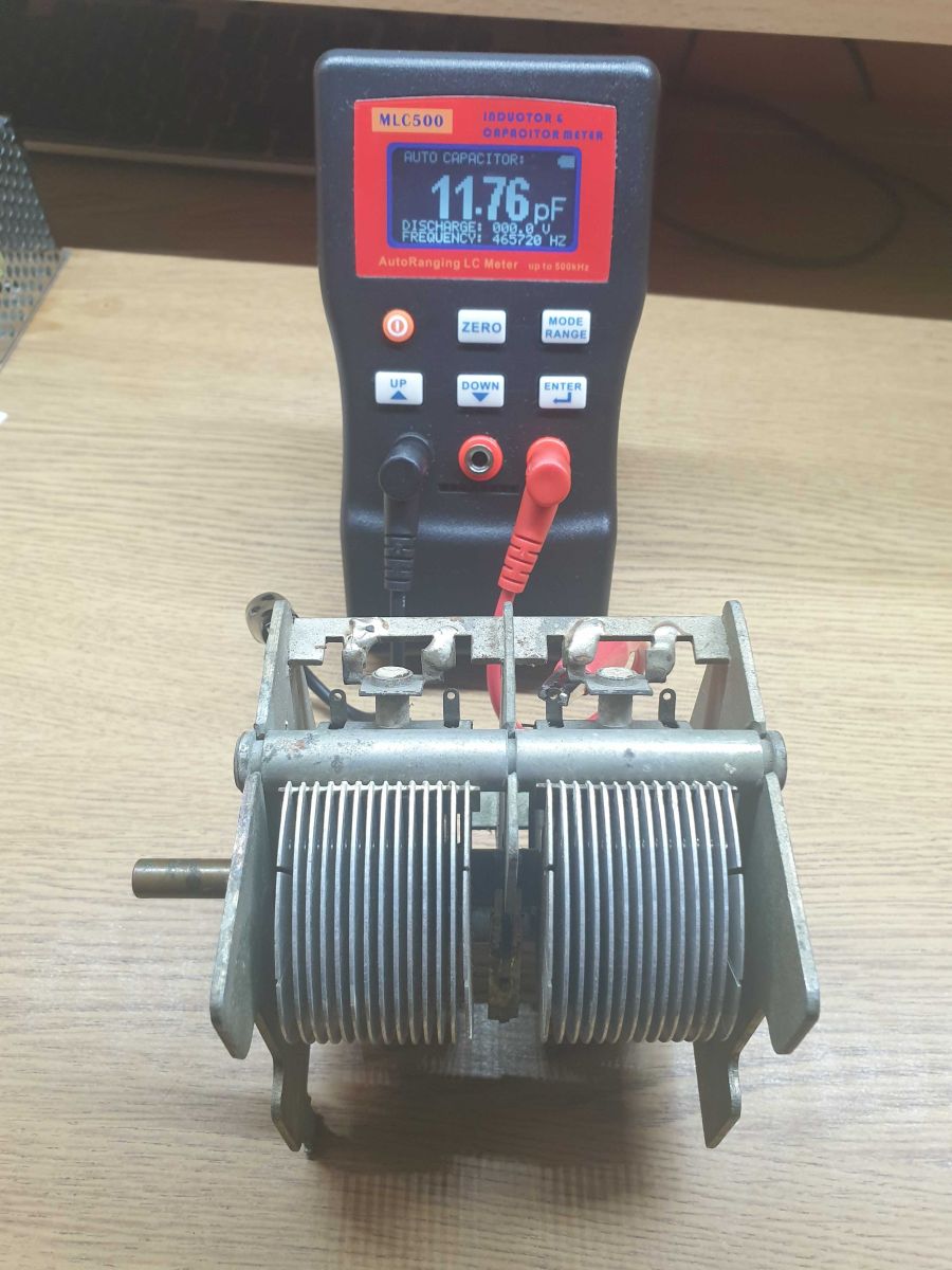 Двухсекционный, ёмкость каждой секции перестраивается в диапазоне 12/560 пФ.