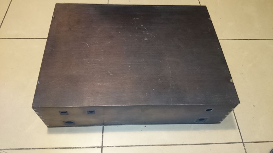 Сборный корпус из дюрали, покрытие химчернение. Состав передняя, задняя панели, шесть боковых стяжек, верхняя, нижняя крышки. Размеры:
