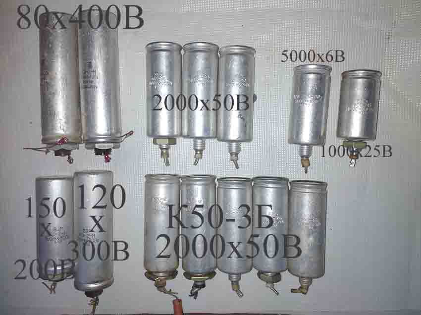 К50-3Б 5000х6В 2шт; К50-3Б 2000х50В 6шт; К50-12 5000х6,3В;