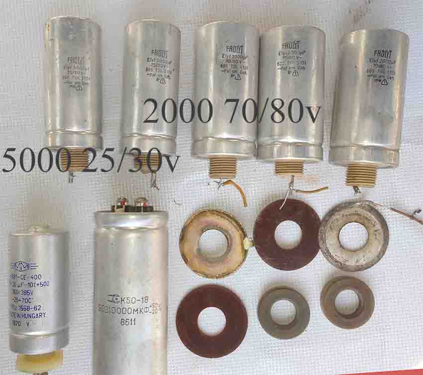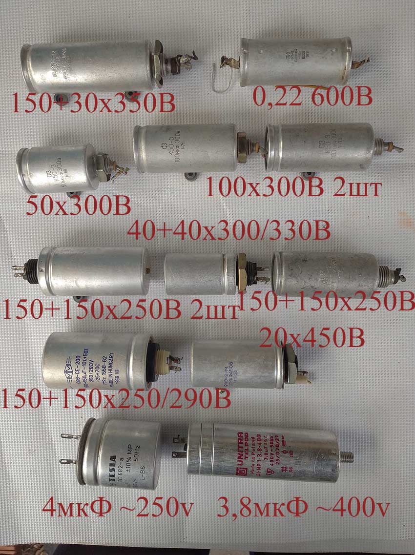 К50-12 150+30х350В 2шт; К50-19 50мкФ 220В; К50-18 4700 мкФ 50В 2шт;