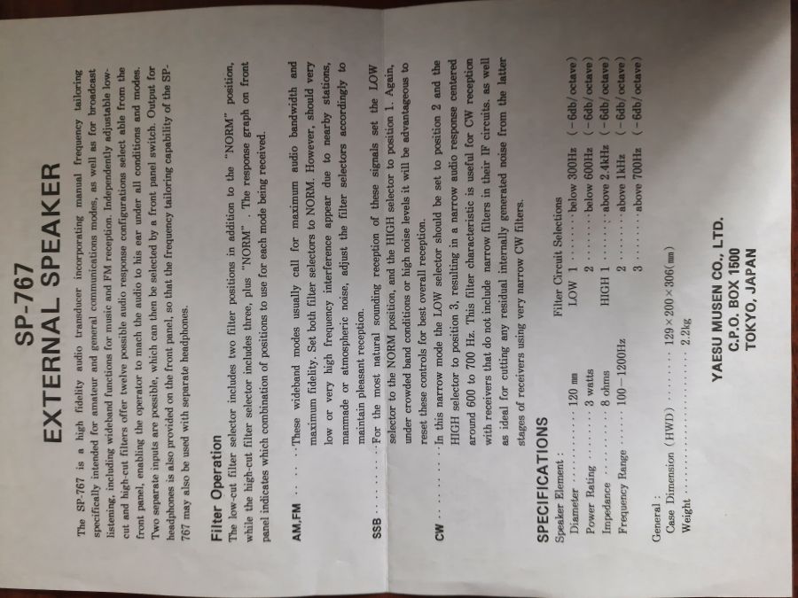 Пропоную динамік Yaesu SP-767 з фільтрами!