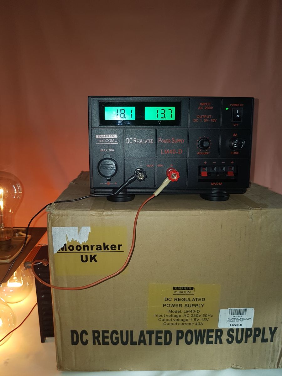 Блок питания проверен на нагрузке - лампочке (см. фото) и на 100 Вт. станции. Падения напряжения нет. Пульсаций нет. Помех - шумов нет. Электронная защита от перегрузки работает отлично.