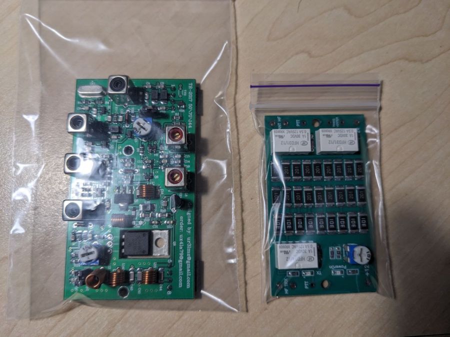 Трансвертер 28-50 МГц призначений для приймання та передавання радіосигналів в аматорському діапазоні 50 МГц за допомогою трансівера, що працює в аматорському КХ диапазоні 28 МГц. Автор конструкції - Шатун Олександр Миколайович (UR3LMZ). Версія плати 2017 року. В використанні не був. В комплекті з зібраною платою модуля аттенюатора та комутації до цього трансвертера. Ціна комплекта 1100 грн