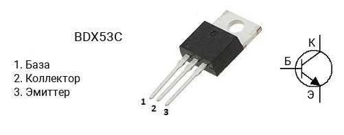 BDX53C / N-P-N / 8А / 100В / 60Вт / 20МГц / Тип корпуса: TO-220 транзистор Дарлингтона биполярный 1шт.
