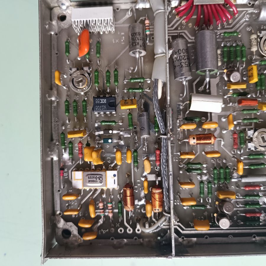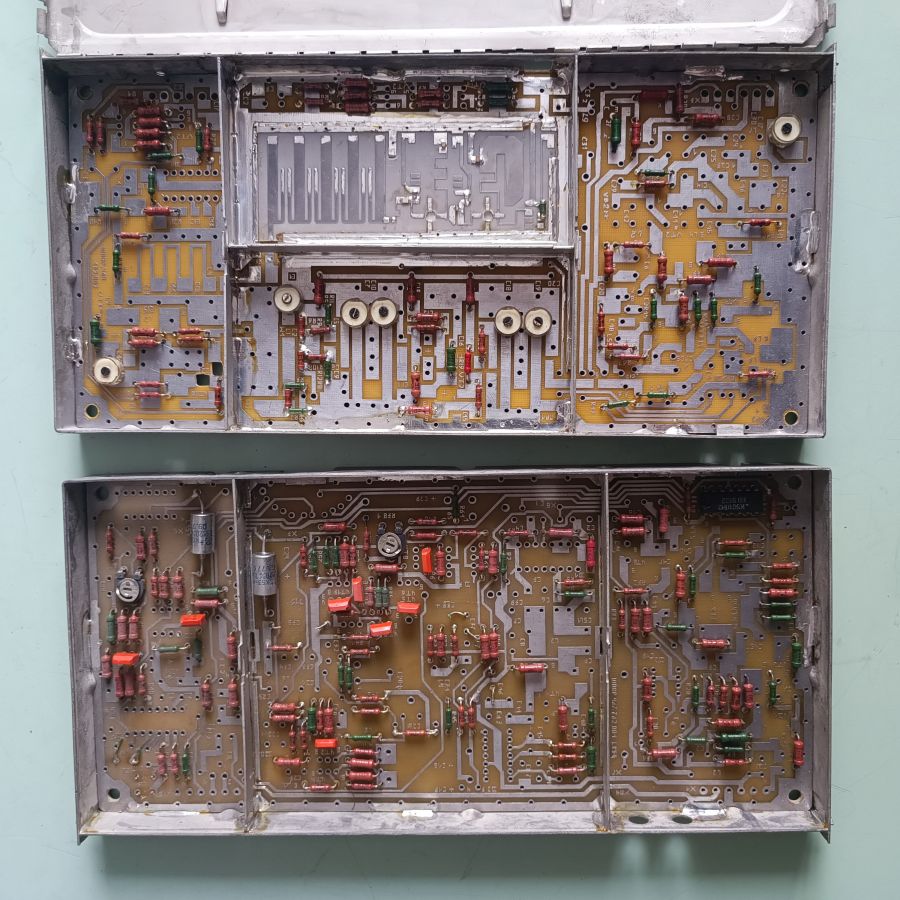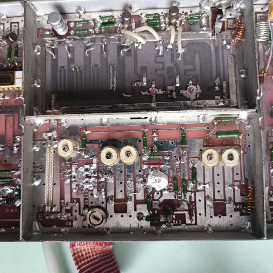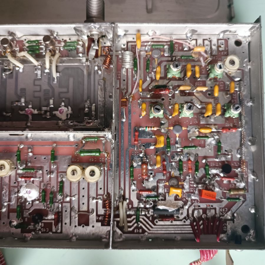 Два блока полностью рабочего тюнера и два блока недособранного тюнера. В этих блоках широкий набор конденсаторов КМ, К10-17, К53, ВЧ-микросхем и транзисторов, СВЧ фильтров и др.