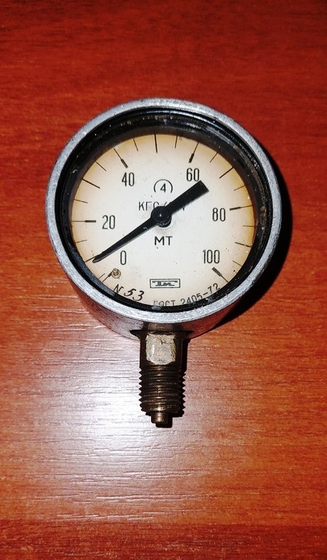 Манометр 0-100 кгс/см2 ГОСТ 2405-72 Б/У 88г. 1шт.