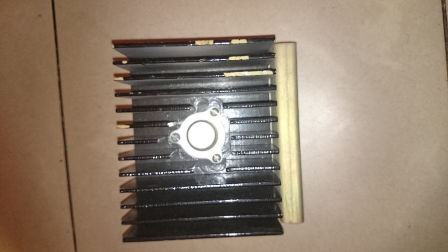 Радиатор под мощные транзисторы. Материал алюминий, грунтовка, покраска. На стальном кронштейне, изолирующем радиатор от шасси прибора