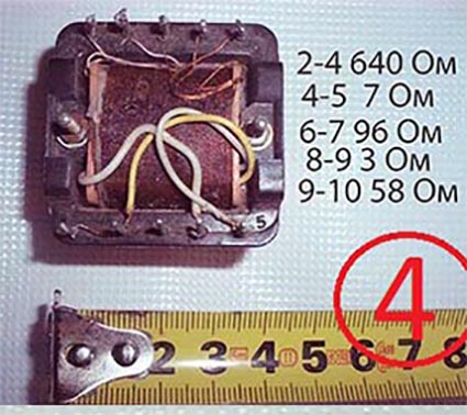 4 2-4 640Ом, 4-5 7 Ом, 6-7 96 Ом, 8-9 3 Ом, 9-10 58 Ом,