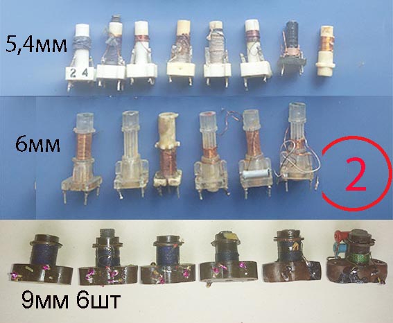 Рис 2. Каркасы диаметром 5,4 6 мм 9мм с сердечниками.