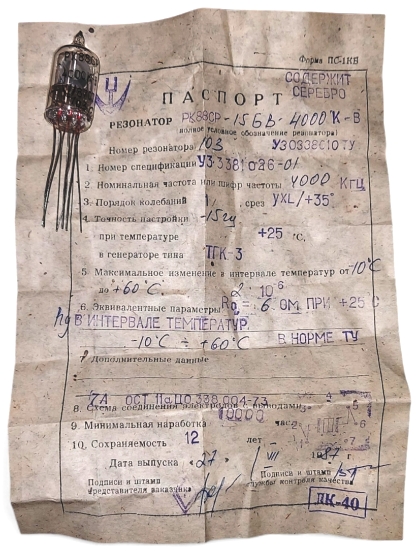РК88СР-15БВ- 4000К-В (4000кГц) ОТК кварцевый резонатор стекляный