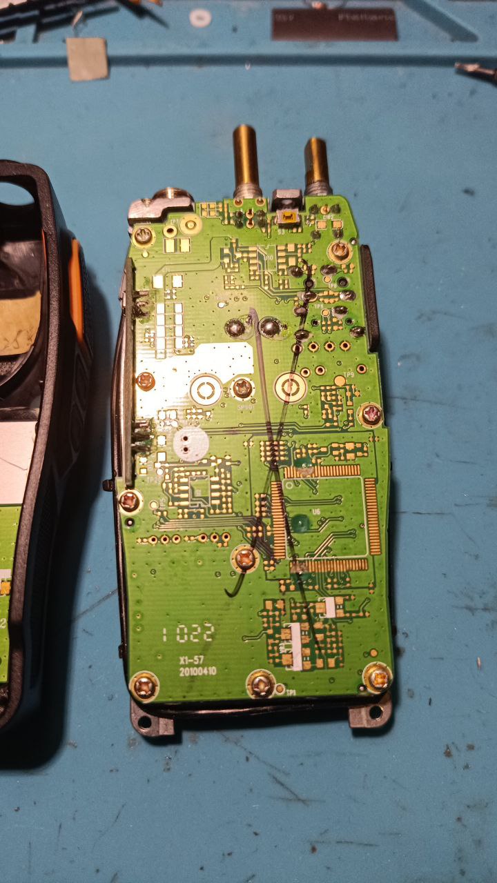 Без экрана, на диапазон 400-470 МГц, около 5 вт мощности, супергетеродин. Полностью рабочая - мощность передатчика, прием, аккумулятор - все на месте. Список записанных частот прилагается.