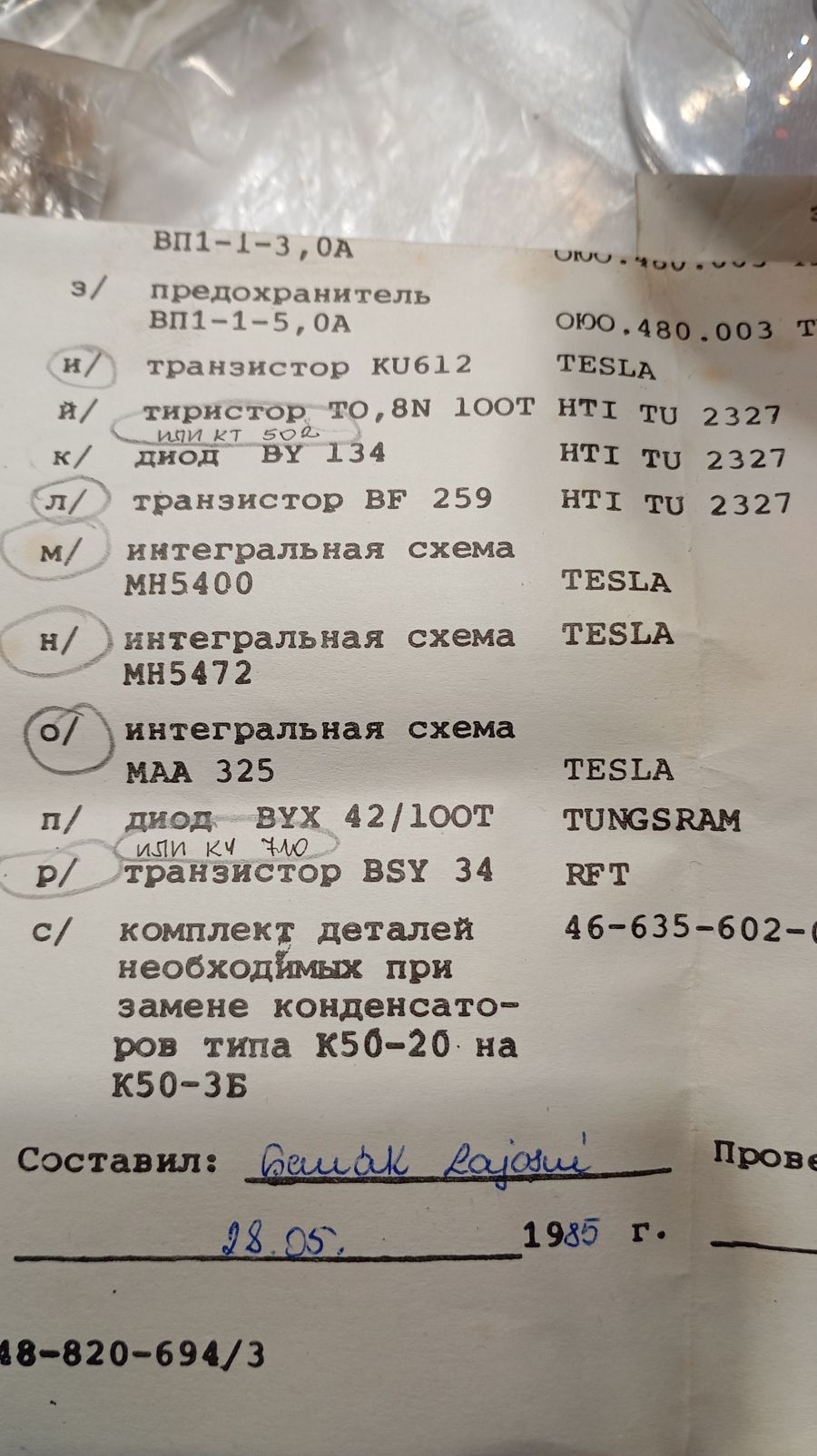 Комплект из ЗИПа к Р-111.