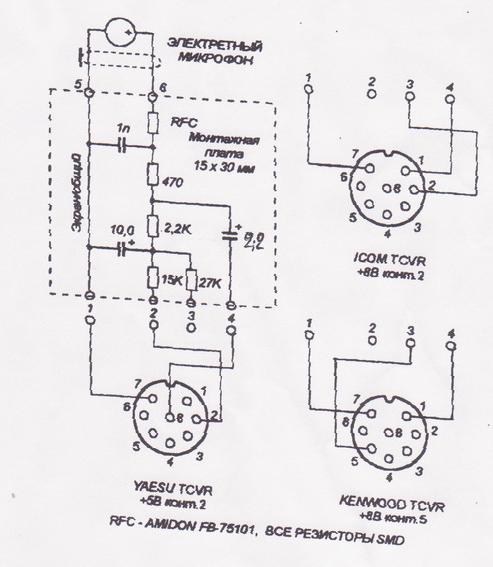 для підключення електретних мікрофонів, комп'ютерних гарнітур до трансіверів ICOM