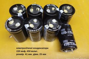 220 мкф. на 450 вольт, размер 41Х25 мм. 8 штук.