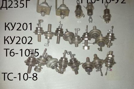 КУ201А 1шт, КУ201Ж 2шт, КУ201Л 1шт, 2У201Л 2шт, КУ202В 1шт, КУ202И 2шт, КУ202М 1щт, Т6-10-5 4шт, Т10-16-У2 3шт, ТС-10-8 1шт, Д235Б 1шт, Д235Г 2шт, Цена 80 грн/шт...