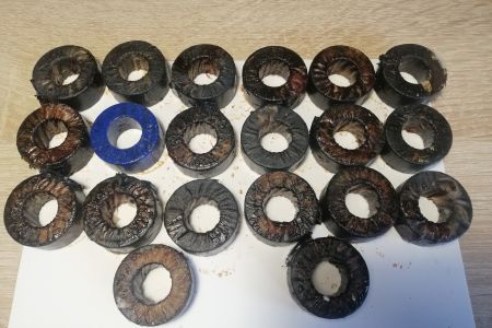 Кольца, демонтаж из старых импульсных источников питания. Размер 35х18х15. Материал неизвестен. Судя по сколу - не феррит. Обмотаны лакотканью. Количество - 20 штук (не считая поврежденного). Цена - 250 грн за все. Отправлю Укрпочтой или Новой Почтой. eugene_apus(at)ukr.net...
