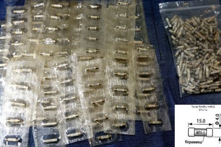 Запобіжник, вставка плавка ВП1-1, призначена для захисту електричних ланцюгів постійного і змінного струму РЕА частотою 50... 2000 Гц від перевантажень і коротких замикань. Корпус – непрозорий (керамічний).Кожен запобіжник містить срібло у кількості 0,0174 гр. Є запобіжники на струм 0,25а,05а.Розмір...