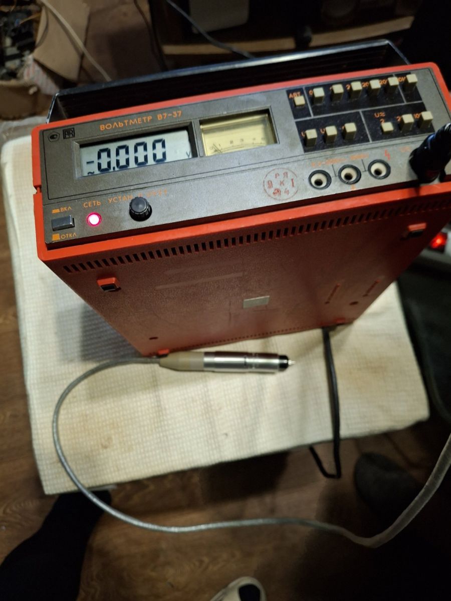 Продам вольтметр В7-37. Произведена регулировка и проверена работа вольтметра на всех режимах. Замечаний к работе вольтметра нет. В вольтметре заменены электролитические конденсаторы. В комплекте ВЧ головка, делитель ДН-519, ТО и схемы. Цена вольтметра-2800 грн. Диоды 6Д24Н проверены на стенде. Анодный ток соответствует параметрам, указанным в ТУ для нового диода.