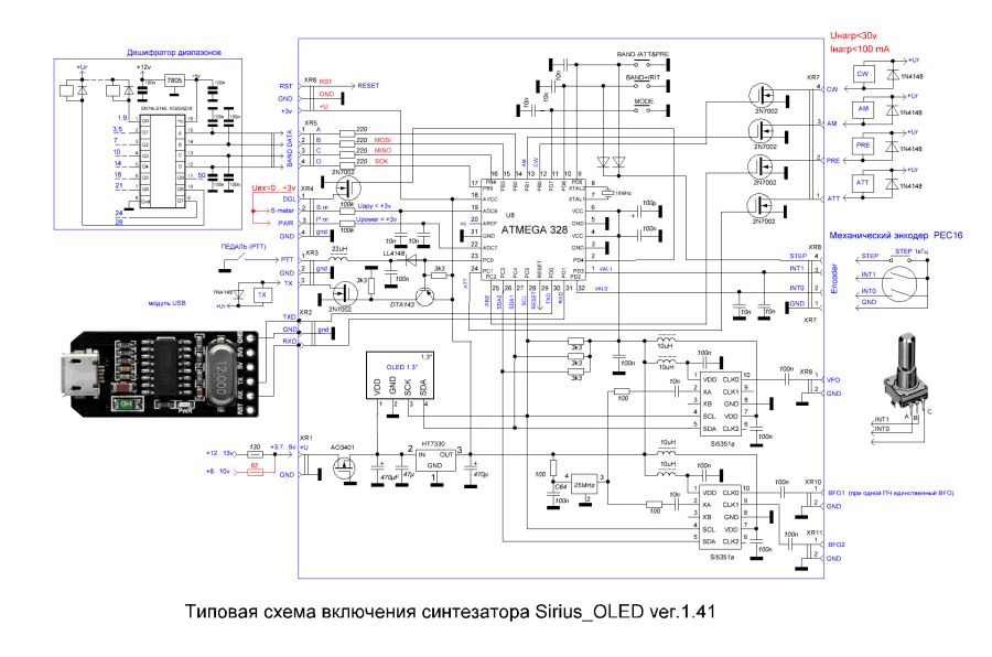 Синтезатор Sirius_OLED предназначен для создания ДВ, СВ и КВ приемников и трансиверов как прямого преобразования, так и с классической структурной схемой или с преобразованием вверх (инфрадин) с одним или двумя преобразованиями частоты., в том числе и для радиолюбителей 5 категории. Благодаря малым габаритам и экономичности (минимально допустимое напряжение питания 3,2В, ток потребления не более 60мА!) его можно с успехом применять в малогабаритных аппаратах с автономным (батарейным или аккумуляторным) питанием.