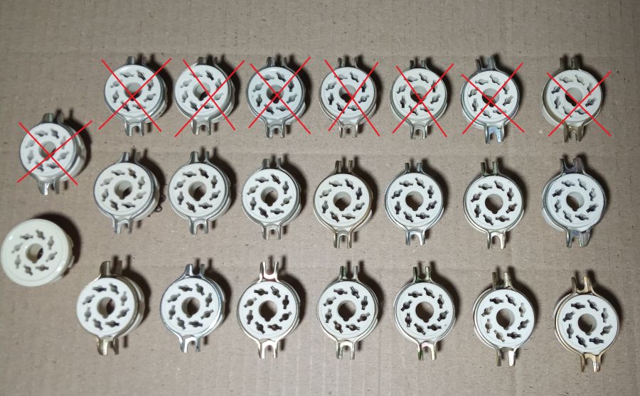 В наявності панельки октальні керамічні до ламп з октальним цоколем (типу 6п3с,6н7с та інші).Також панелі до променевих трубок та інші на фото.